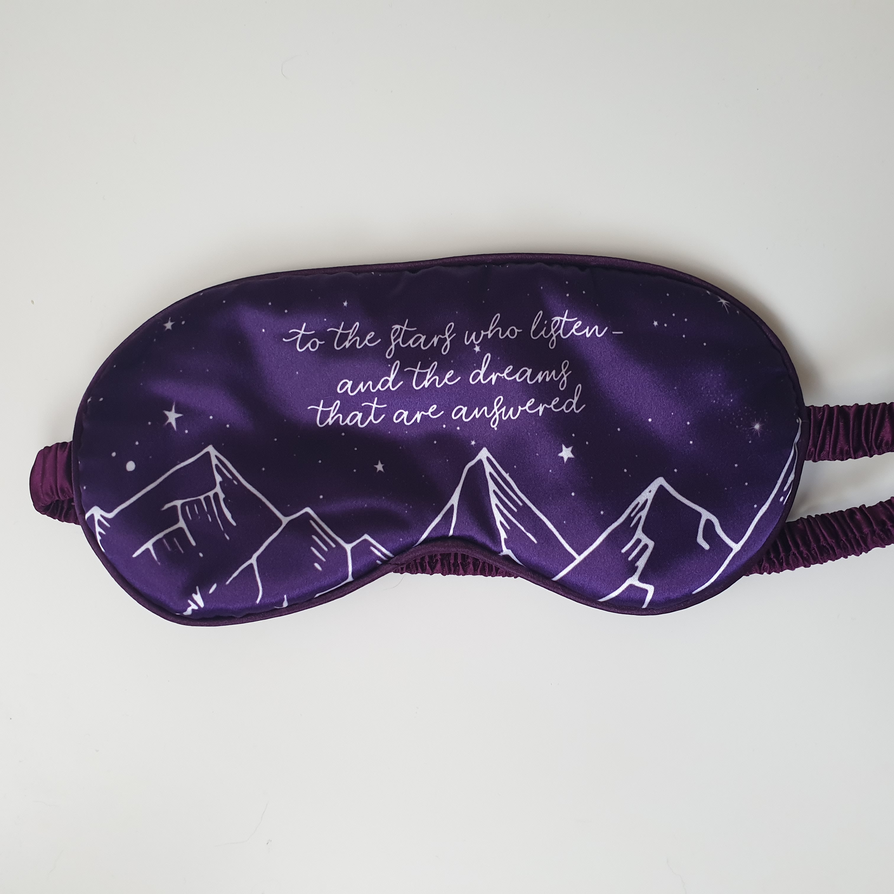 Second item is a sleep mask with a quote from A Court of Mist and Fury, designed by Bookworm Boutique.