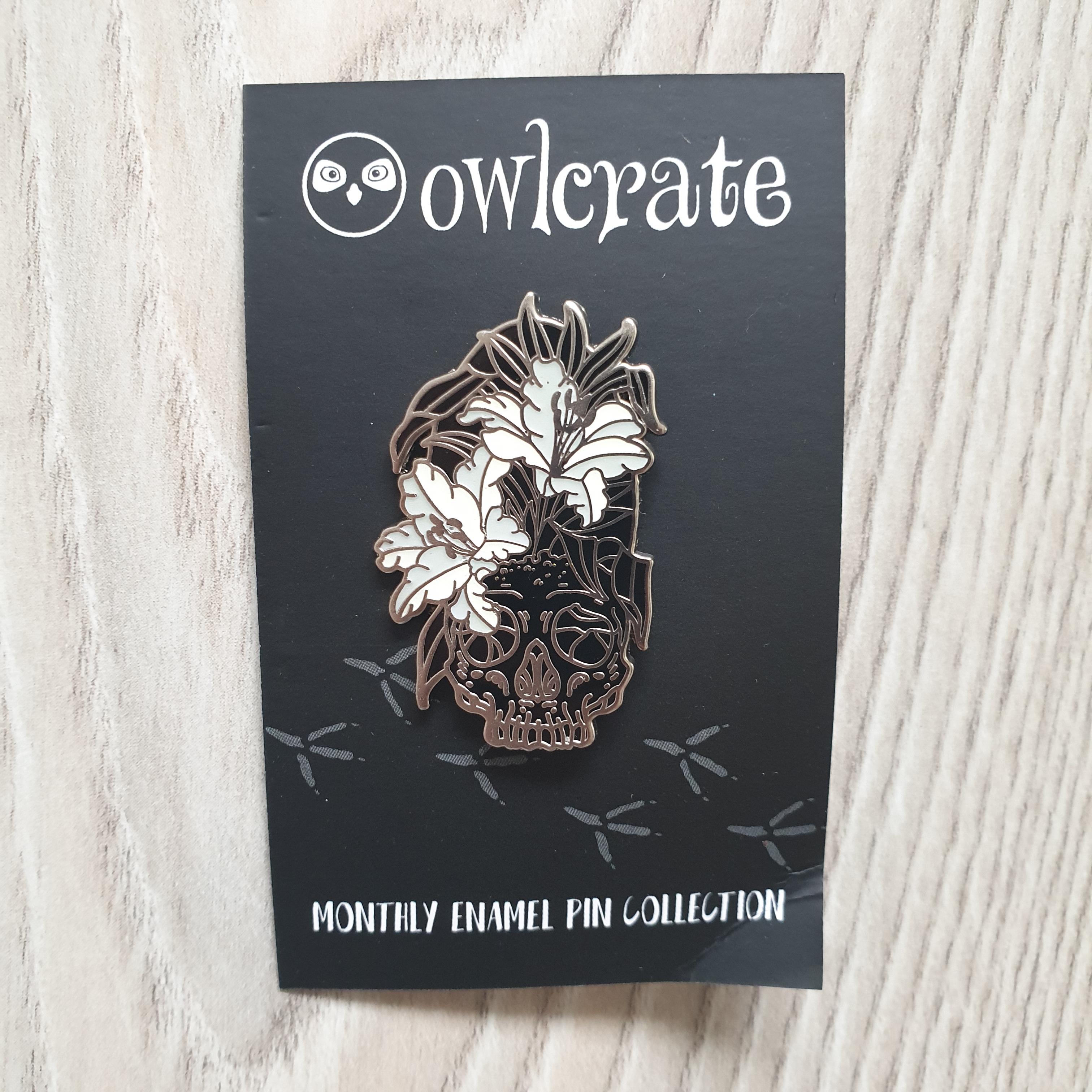 The pin inspired by this month’s book has beeen designed by Lapels and Spells. It is pretty awesome since the flowers glow in the dark!