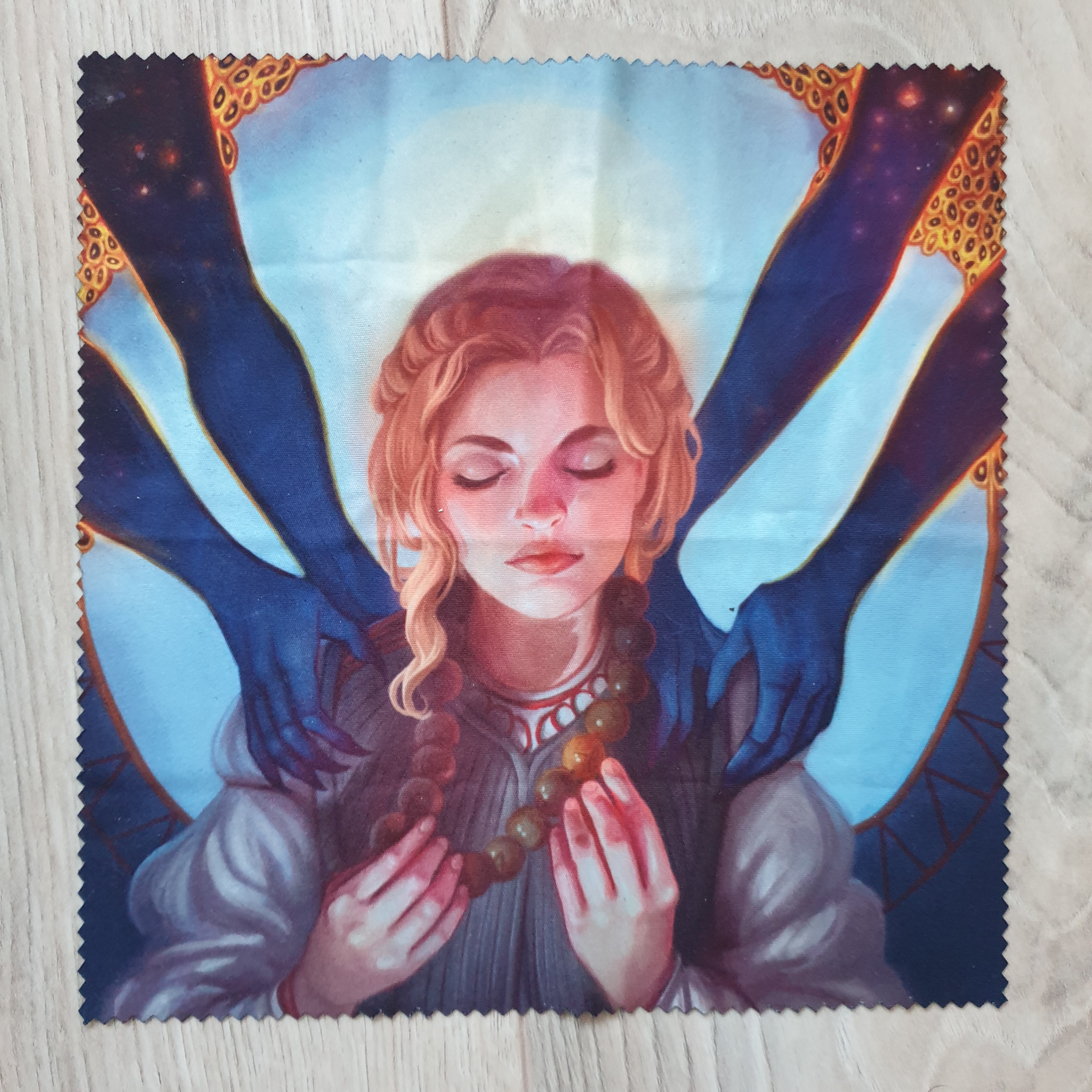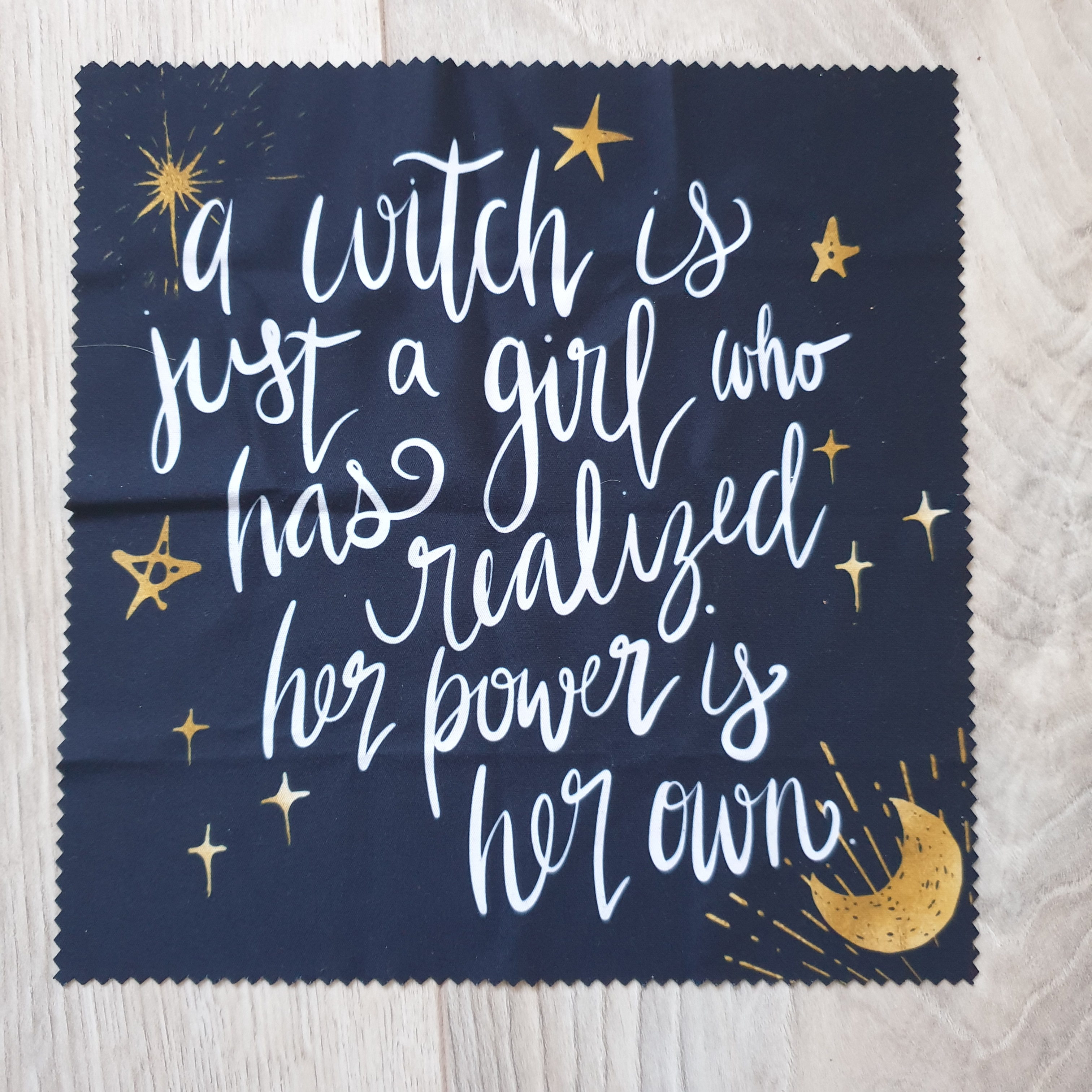 The second item is a screen cleaning cloth inspired by Wicked Saints! One side is a Nadya fanart created by Nicole Deal and the second side includes a quote hand-lettered by Leaf and Lore.