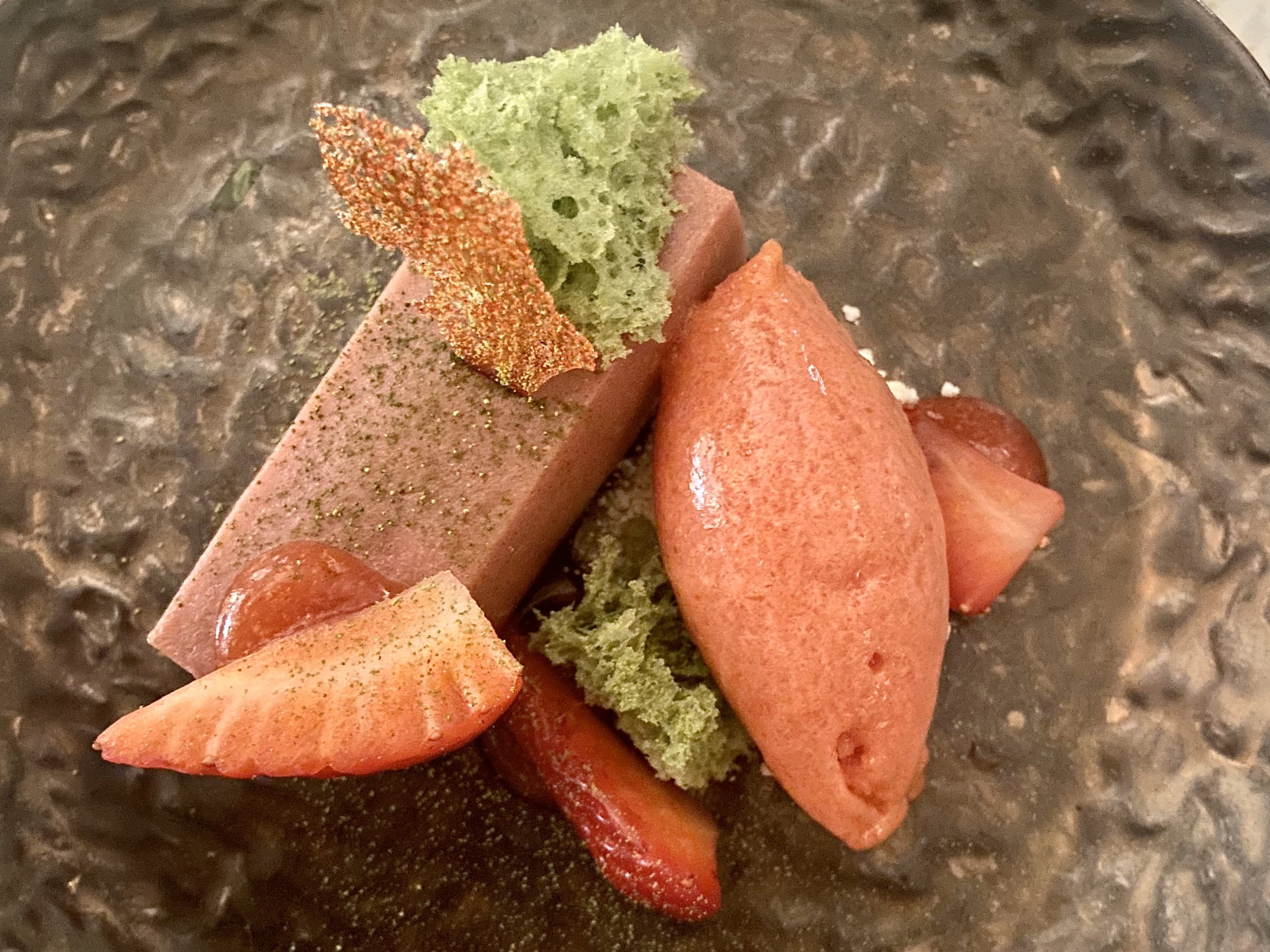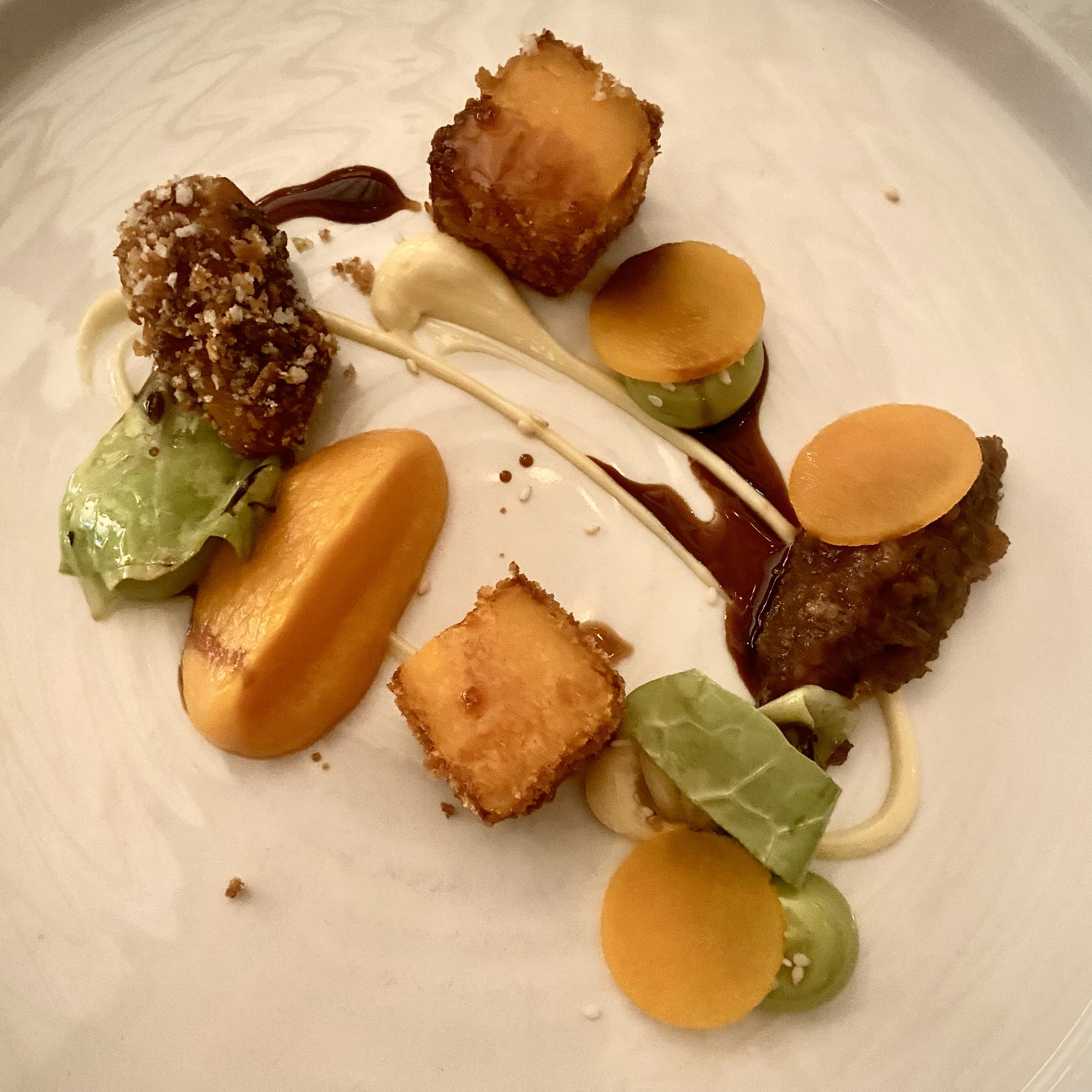 Panko Hokkaido Pumpkin, Cabbage & Yakitori Shallot Jam was the last dish served before the dessert. The taste was ok but such a heavy pumpkin based dish in March would not have been my first choice. However the purée texture was disappointing.